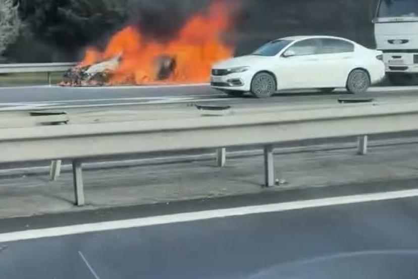Avcılar’da seyir halinde olan otomobil bir anda yanmaya başladı. Alevler kısa sürede aracın tamamını sardı. İhbar üzerine olay yerine sevk edilen itfaiye ekiplerinin müdahalesiyle yangın söndürüldü. Yangın, yoldan geçen diğer araçların sürücüleri tarafından cep telefonuyla görüntülendi.