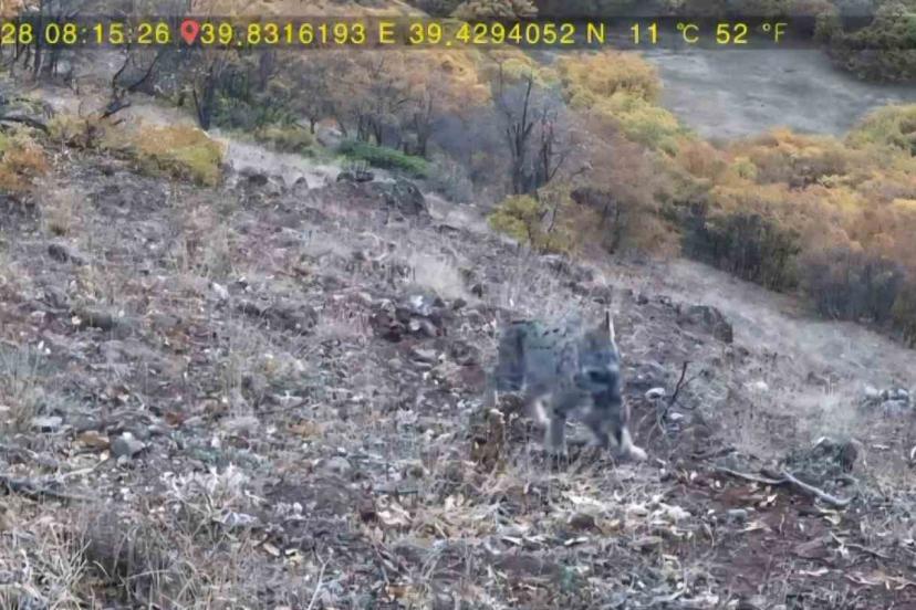 Tunceli’de nesli tehdit altında olduğu için IUCN kırmızı listesinde yer alan vaşak, önce avladığı tavşanı götürürken ardından da 2 yavrusuyla birlikte fotokapana yansıdı.