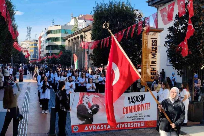 Avrasya Üniversitesi, 29 Ekim Cumhuriyet Bayramı etkinliklerini Trabzon Maraş Caddesi’nde 60 öğrencinin sahnelediği Harmandal...