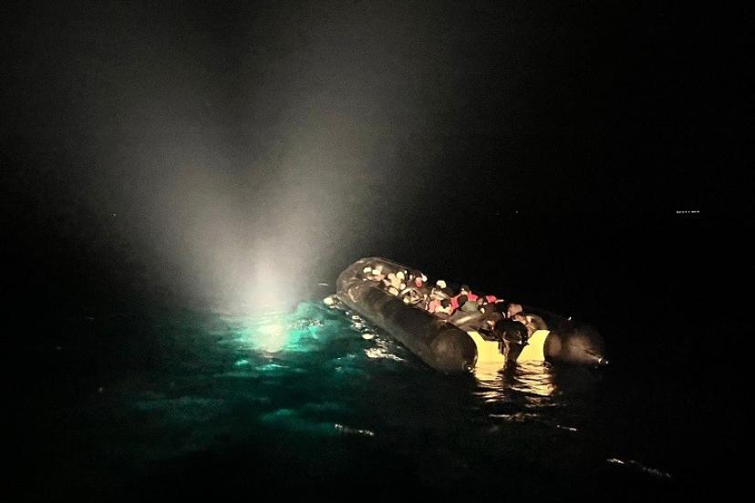 Aydın’ın Didim ilçesi açıklarında lastik bot içerisinde 29 düzensiz göçmen yakalandı.