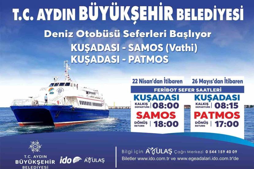 Aydın Büyükşehir Belediye Başkanı Özlem Çerçioğlu, Kuşadası’ndan Yunan adaları Samos ve Patmos’a deniz otobüsü seferlerinin başlayacağını duyurdu. Aydın Büyükşehir Belediyesi tarafından turizmi canlandırmak ve ulaşımı kolaylaştırmak amacıyla hayata geçirilen proje kapsamında, Kuşadası ile Samos ve Patmos adaları arasında düzenli seferler gerçekleştirilecek. Kuşadası-Samos hattında seferler 22 Nisan itibarıyla başlayacak. Sabah saat 08.00’de Kuşadası’ndan hareket edecek deniz otobüsünün dönüşünü ise saat 18.00’de gerçekleştirecek.