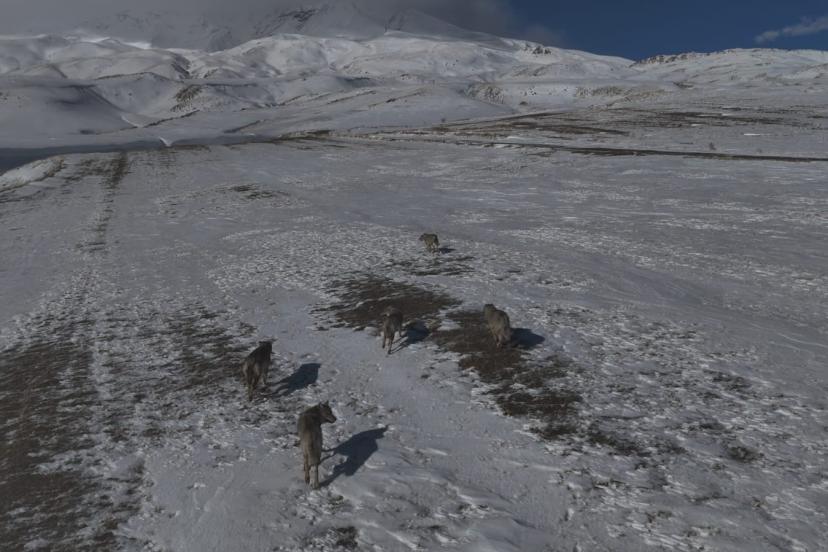Beldeye yakın dağlık bölgede hobi amaçlı dron uçuran bir vatandaş, sürü halinde ilerleyen kurtları fark etti. Yaklaşık birkaç dakika süren görüntülerde kurtların düzenli bir şekilde arazide ilerlediği, çevreyi kontrol ederek hareket ettikleri görülüyor. Görüntüleri kaydeden Orhan Amen, "Doğanın içinde böyle bir ana tanıklık etmek heyecan vericiydi. Kurtlar beni fark edince yön değiştirip uzaklaştı" dedi.