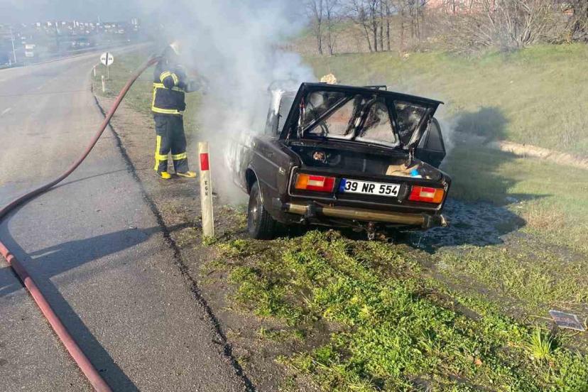 Kırklareli’nin Babaeski ilçesinde seyir halindeki otomobilde yangın çıktı.
