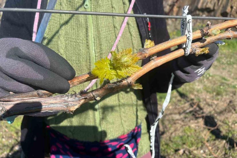 Sarıgöl’ün Tırazlar Mahallesi’nde 25 dekarlık erkenci Süperyol üzüm bağı bulunan üretici Aytaç Ünlükoç, çubuk bağlama çalışması yaptığı sırada bağ çubuklarındaki gözlerin patladığını ve yaprakların belirgin şekilde ortaya çıktığını fark etti.