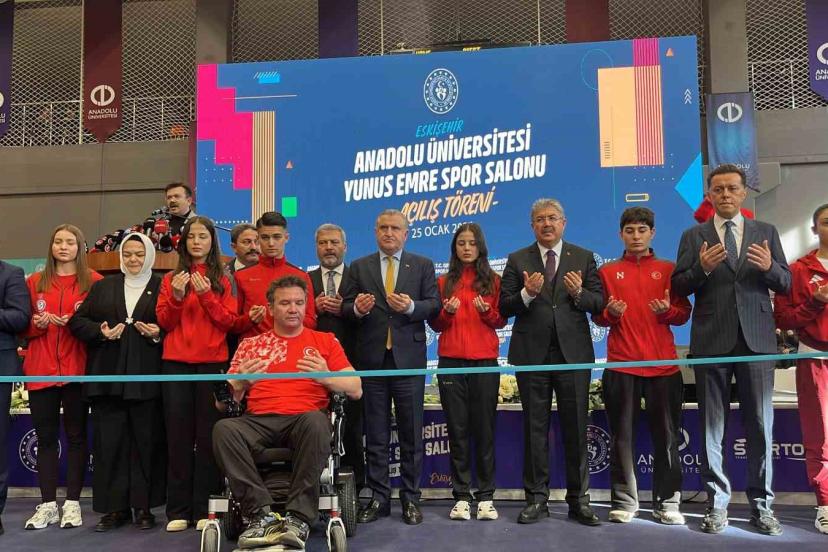 Bir dizi temas için Eskişehir’e gelen Gençlik ve Spor Bakanı Osman Aşkın Bak, AK Parti İl Başkanlığı ziyaretinin ardından Anadolu Üniversitesi’nde gerçekleşen Yunus Emre Kapalı Spor Salonu Açılış Töreni’ne katıldı. Program, saygı duruşu ve İstiklal Marşı’nın okunması ile başladı. Ardından Anadolu Üniversitesi ve Gençlik ve Spor Bakanlığının tanıtım filmleri izletildi. Yapılan konuşmalarından ardından dualar eşliğinde kurdele kesimi gerçekleşti. Tören sonrasında temsili olarak spor müsabakaları düzenlendi.
