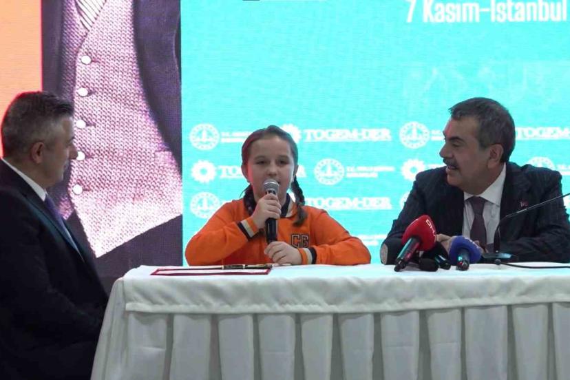 Program sırasında küçük bir öğrenciye mikrofon uzatan Bakan Tekin, samimi bir sürprizle karşılaştı. Heyecandan konuşmakta zorlanan minik öğrenci, "Hoş geldin Millî Bakanım, siz çok iyi birisiniz" diyerek salondakilere tebessüm ettirdi.