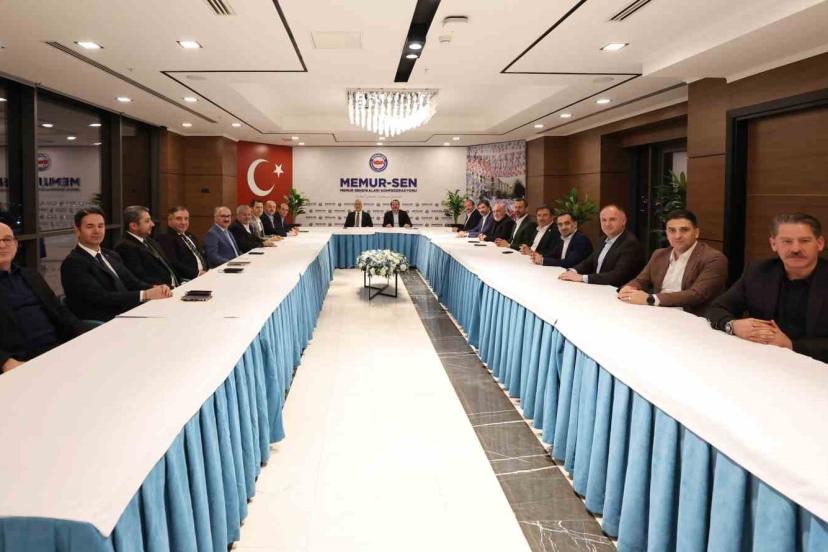 Çalışma ve Sosyal Güvenlik Bakanı Vedat Işıkhan, Memur-Sen’i ziyaret etti. Memur-Sen Genel Başkanı Ali Yalçın, ziyarete ilişkin sosyal medya hesabından yaptığı paylaşımda, "Çalışma ve Sosyal Güvenlik Bakanı Vedat Işıkhan’ı Konfederasyonumuzda ağırladık. Ziyaretleri vesilesiyle Vedat Işıkhan ile kamu görevlilerimizin ve emeklilerimizin sahadaki gerçek gündemini, acil çözüm bekleyen sorunlarını ve çalışma hayatına dair sendikal beklentilerimizi aktardık. Öncelikli olarak 4688 sayılı Kanun’da değişiklik ihtiyacını görüştük. Gündem yoğunluğundan ötelenmek durumunda kalınan 2026 Mart KPDK’sı için tarih ve yol haritasının belirlenmesini ve KPDK’nın nisan içinde toplanmasını istedik. Toplu sözleşmede hüküm altına alınan ve aksaklıklar yaşanan başta koruyucu giyim kazanımımız olmak üzere uygulamasında tereddüt yaşanan ve Bakanlığa ilettiğimiz hükümlerle ilgili görüş alışverişinde bulunduk. Görüşmede ayrıca kamu görevlilerimizin acil çözüm bekleyen taleplerine yönelik olarak ilave 1. derece ve dereceye 3600 ek gösterge verilmesi, seyyanen zam uygulaması, ilave ek ödemenin kamu görevlisi emeklilerimize de yansıtılması, vergi dilimlerindeki adaletsizliğin kalıcı olarak giderilmesi, disiplin affı, Mühendislik Meslek Kanunu, akademik zam ve YHS personelinin GİH’e geçirilmesi, kariyer uzmanlarının durumu hususları başta olmak üzere çalışma hayatına ilişkin mevcut durumu da içeren 10 konu ve 20 başlıkta kamu personel sistemi reformu önerimizi gündeme getirdik" dedi.