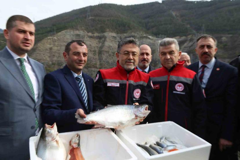 Türkiye’de balıkçılık sektörünün son yıllarda önemli bir gelişim gösterdiğini belirten Bakan Yumaklı, "Türkiye’de balıkçılık sektörünün özellikle son yıllardaki gelişimi bizi ziyadesiyle memnun ediyor. Son dönemde 1 milyon tonluk üretim barajının aşılmış olması ve bu rekorun kırılması balıkçılık sektörünün potansiyelini üretime çevirdiğini gösteriyor. Türkiye’deki üretimin yüzde 60’ı yetiştiricilikten sağlanıyor ve barajlarımız ile uygun alanlarımız bu alanda büyük bir potansiyel sunuyor. Son 23 yılda yetiştiricilik 10 kat artarak yaklaşık 650 bin ton seviyesine ulaştı. Türk somonu, alabalık, levrek ve çupra gibi ürünler artık dünya pazarlarında marka haline geldi ve bu durum sektörün geleceği adına umut verici. Su ürünleri üretiminde hem yetiştiricilikte hem de avcılıkta 2024 yılından itibaren üretim planlamasına geçtik ve yüzde 95’in üzerinde bir oranda bu uygulamayı hayata geçirdik. Üretim planlaması koruma ve kullanma dengesini gözeterek bitkisel, hayvansal ve su ürünleri üretiminde başarılı sonuçlar verdi. 2025 yılında su ürünleri ihracatımız 2,3 milyar dolara ulaştı ve bunun yaklaşık 500 milyon doları Türk somonundan elde edildi. Son 8 yılda Türk somonu üretimi 15 kat arttı. İç sularda ve denizlerde yetiştiricilikte önemli başarılar elde ettik. İşleme tesisleri, ihracata hazırlık ve iç piyasaya sunum noktasında yeni yatırımları planlamaya devam ediyoruz. Artvin, Türk somonu üretiminin en önemli merkezlerinden biri. Şu anda Borçka Barajı’ndayız ve 2025 yılında burada 3 bin tonluk üretim gerçekleştirildi. Bölgede 11 tesis bulunuyor ve bunun ekonomik karşılığı 765 milyon liradır. Bu rakamlar yalnızca birer sayı değil, aynı zamanda Artvin’e sağlanan ciddi bir ekonomik katkıdır. Artvin’in bu potansiyelini daha da geliştirmeye devam edeceğiz. Üç tarafı denizlerle çevrili ve barajlarla dolu ülkemizde balıkçılık çok daha büyük bir potansiyele sahip ve sektörün gelişmesiyle birlikte hem yetiştiricilikte hem de avcılıkta ülke ekonomisine önemli katkılar sağlanacaktır" ifadelerini kullandı.