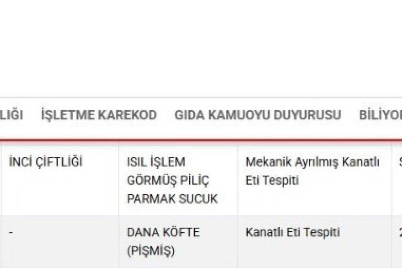 "Zirve Sucuk ve Pastırma - Ramazan Helvacı - ısıl işlem görmüş piliç parmak sucuk (mekanik ayrılmış kanatlı eti tespiti, Elif Yemek Hizmetleri - Gülizar Koşmaz - dana köfte (kanatlı eti tespiti)"