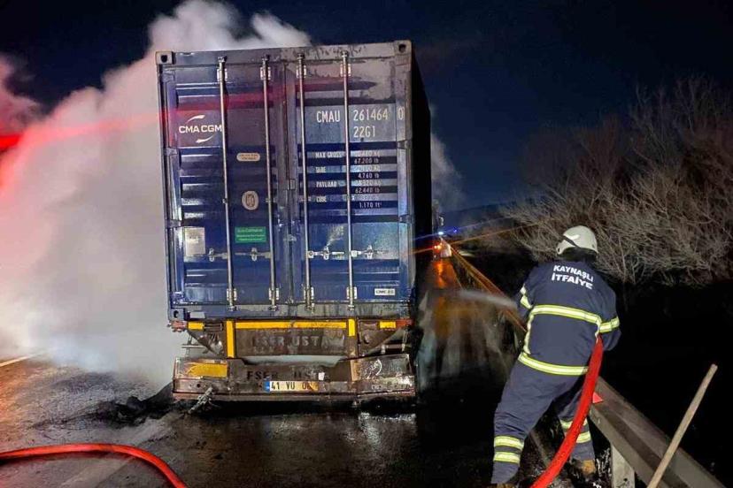Balatalarından tutuşan tırdaki yangın kısa sürede söndürüldü