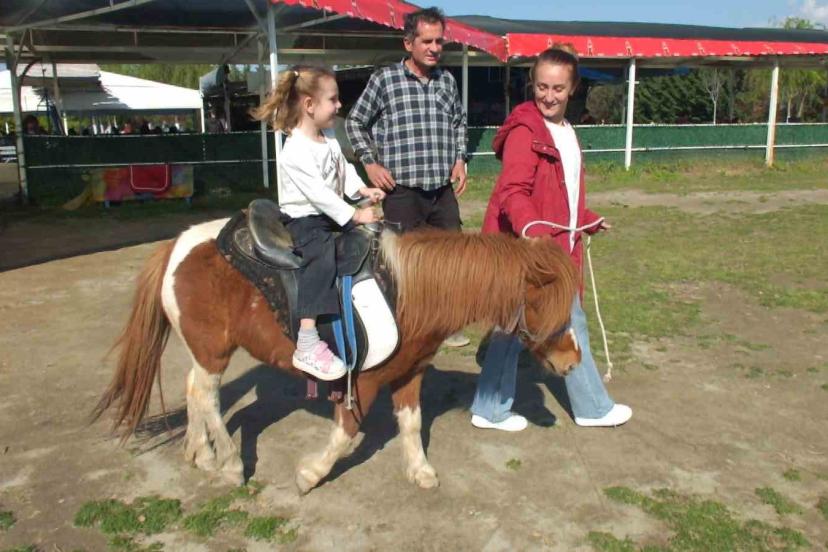 Burhaniye ilçesinde, velileriyle birlikte Ören Meço Tatil Sitesi yanında bulunan Mila Garden işletmesine gelen çocuklar, at binerken mutluluk yaşadı. Midilli Pony atlarına binen çocuklar at binmeyi herkese tavsiye ettiklerini söyledi,