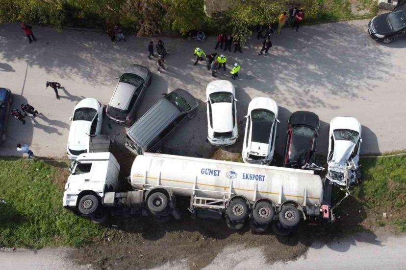 Olay, Balıkesir’de Değirmenbogazi piknik alanının önünde meydana geldi. Bursa yönünden Balıkesir istikametinde gelen M.G. yönetimindeki 63 AIM 790 plakalı ayçiçek yağı yüklü tanker, direksiyon hakimiyetinin kaybedilmesi sonucu park halindeki otomobillerin üzerine devrildi. Tankerde bulunan 2 kişinin yara almadan tankerden çıktığı öğrenildi. Kaza ihbarı üzerine olay mahalline itfaiye, sağlık ve polis ekipleri sevk edildi. Yağ dolu tankerde bir sızıntı olmadığı görüldü. Karesi ekipleri tarafından olay yerinde yangına karşı gerekli güvenlik önlemi alındı. Kazayla ilgili tahkikatın devam ettiği açıklandı.