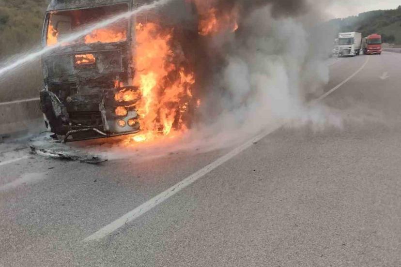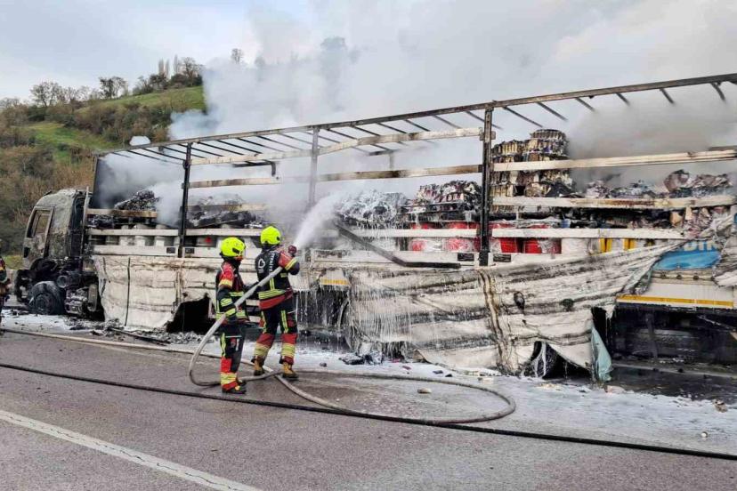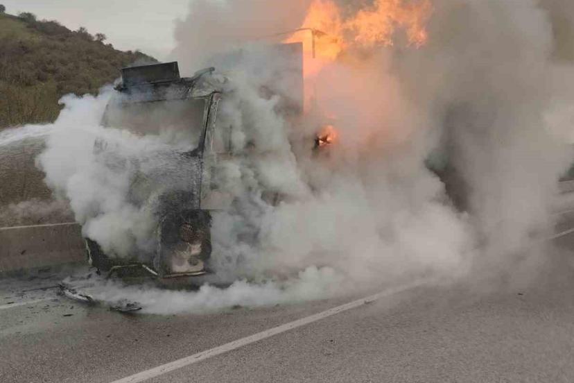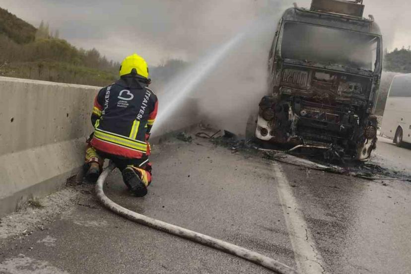 Balıkesir’de yanan tır kullanılmaz hale geldi