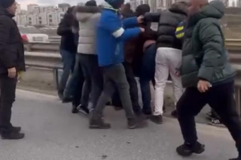 İstanbul’un Başakşehir ilçesinde akşam saatlerinde oynanacak Galatasaray-Fenerbahçe maçı öncesinde taraftarlar arasında gerginlik yaşandı. Stada giriş saatine yaklaşık bir buçuk saat kala çıkan tartışma kısa sürede kavgaya dönüştü. O anlar cep telefonu kamerasına saniye saniye yansıdı.