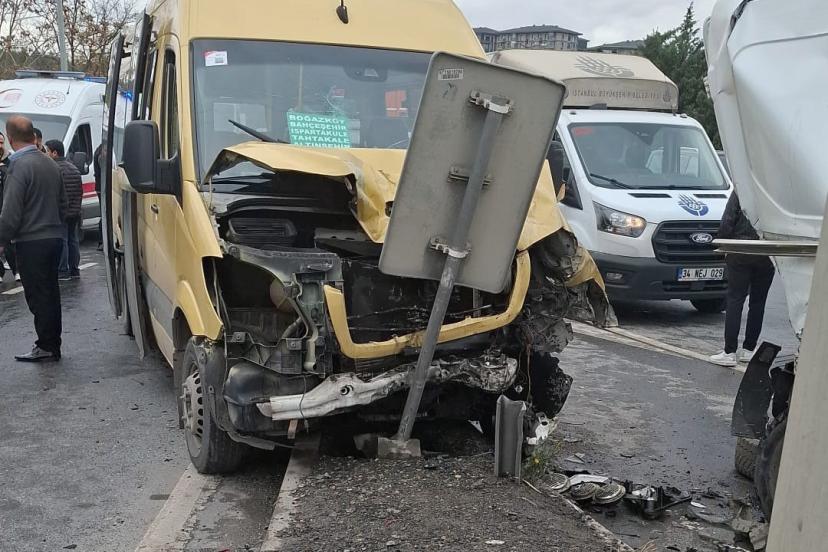 İstanbul Başakşehir’de Avrupa Otoyolu yan yolda meydana gelen zincirleme kazada, yolcu minibüsü, bir bankaya ait para transfe...