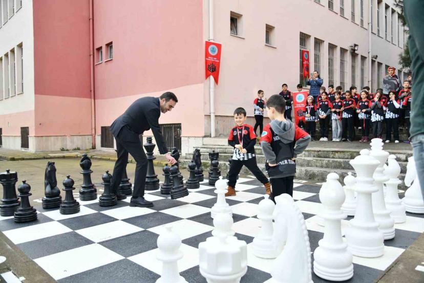 Başiskele’deki Misak-ı Milli İlkokulu bahçesine, belediye tarafından satranç oyun alanı yapıldı.