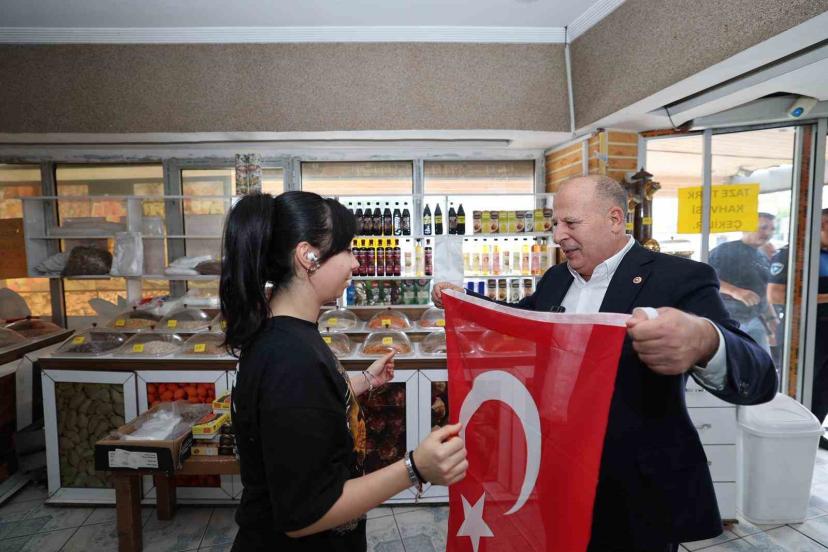 Adana Yüreğir Belediye Başkanı Ali Demirçalı, 29 Ekim Cumhuriyet Bayramı dolayısıyla ilçedeki esnafı ziyaret ederek Türk bayrağı dağıttı.
