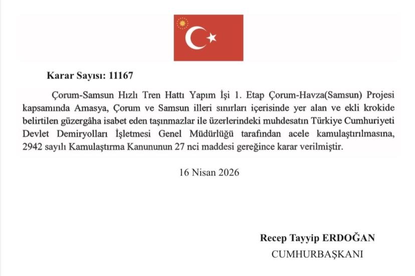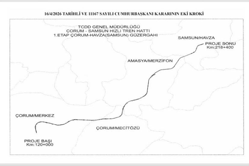 Samsun Büyükşehir Belediye Başkanı Halit Doğan, Çorum-Samsun Hızlı Tren Hattı’nın Havza’ya kadar olan 1. etap yapım işinin Resmî Gazete’de yayımlandığını açıkladı. Doğan, projenin bölgenin ulaşım ve üretim altyapısına önemli katkılar sağlayacağını belirtti.