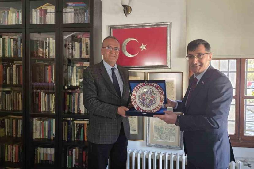 Kütahya Belediye Başkanı Eyüp Kahveci, Avrupa Konseyi Kültür Rotaları 14. Yıllık Danışma Forumu’nun üçüncü gününde, ilk oturumun ardından şehrin Turizm Master Planı’nı hazırlayan Kapadokya Üniversitesi Rektörü Prof. Dr. Hasan Ali Karasar’ı ziyaret ederek verimli bir görüşme gerçekleştirdi.