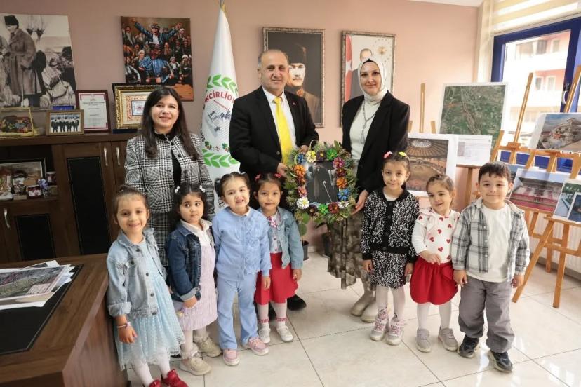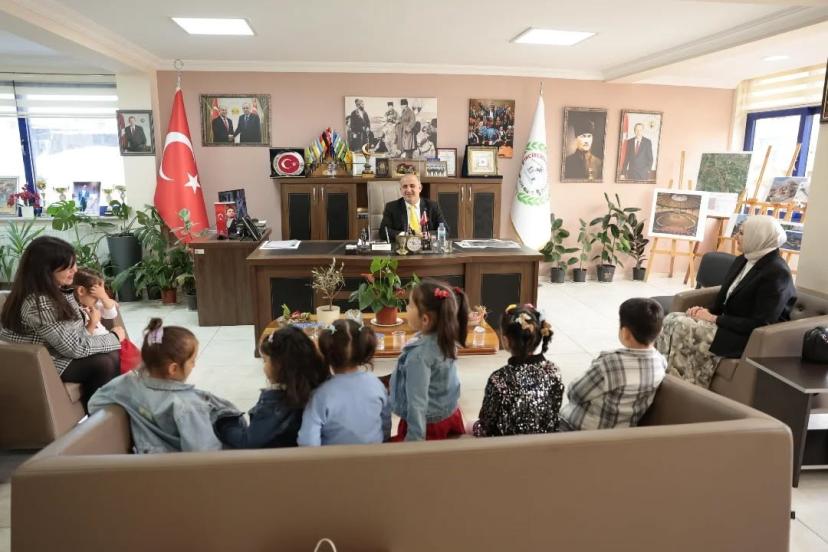 İncirliova Belediye Başkanı Aytekin Kaya Hayme Hatun Anaokulu öğrencilerini belediyede ağırlayarak miniklerle bir araya geldi.