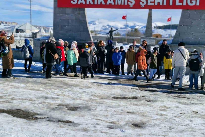 Erzurum’un Palandöken İlçesine bağlı Başöğretmen İlkokulu öğrencilerinin oluşturduğu bir grup, Sarıkamış harekatının 111.yıl dönümü nedeniyle Sarıkamış Şehitliği’ni ziyaret etti.