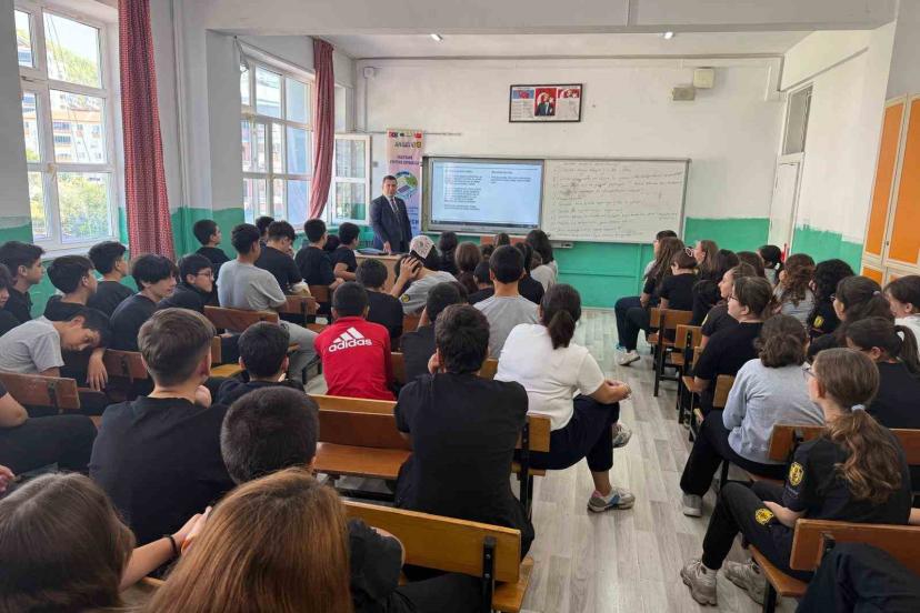 Öğrencilerle buluşan Mersin’in Anamur Cumhuriyet Başsavcısı Tanju Çatlı," Savcılık bir meslek değil, bir vicdan yolculuğudur. Biz, adaletin terazisini tutan elleriz. Sizler de büyüdüğünüzde hangi mesleği seçerseniz seçin, adil olun, dürüst olun, vicdanınızla yaşayın" dedi.