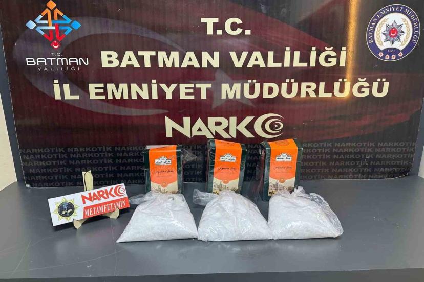 Batman Şehirlerarası Otobüs Terminalinde şüpheli bir taksinin içindeki eşyaların arasında 3 kilo 50 gram metamfetamin ele geçirilen 2 şahıs tutuklandı.