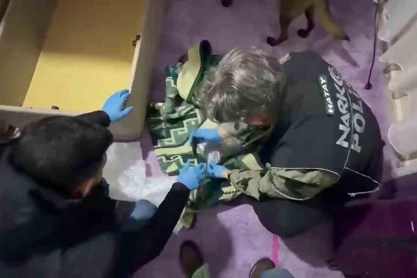 Hatay’da gerçekleştirilen operasyonda bazanın altında battaniyeye zulalanan uyuşturucu maddeyi narkotik köpeği buldu.