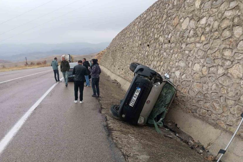Bayburt’tan Erzurum’a seyir halinde bulunan 34 FU 2027 plakalı Fiat Fiorino hafif ticari aracın sürücüsü, direksiyon hakimiyetini kaybetti. Kontrolden çıkan araç, yol kenarında bulunan taş duvara çarptıktan sonra yan devrilerek durabildi. Çarpmanın şiddetiyle araçta maddi hasar oluştu.