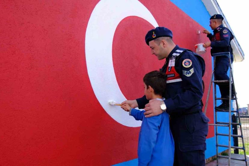 Etkinlik kapsamında jandarma personeli, öğrencilerle birlikte fırçaları ellerine alarak, okul duvarına al yıldızlı dev Türk bayrağını çizdi. Duvara nakşedilen bayrağın etrafı da hep birlikte boyanarak, tamamlandı. Boyama sürecinin ardından öğrencilere rengarenk balonlar, Türk bayrakları ve çeşitli hediyeler dağıtıldı. 29 Ekim Cumhuriyet Bayramı, köy okulunda büyük bir coşkuyla kutlandı.