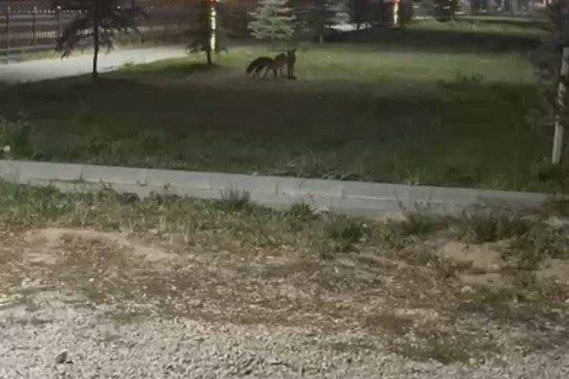 Bayburt’ta şehir merkezine inen iki tilki, gece saatlerinde birbirleriyle oynarken görüntülendi.