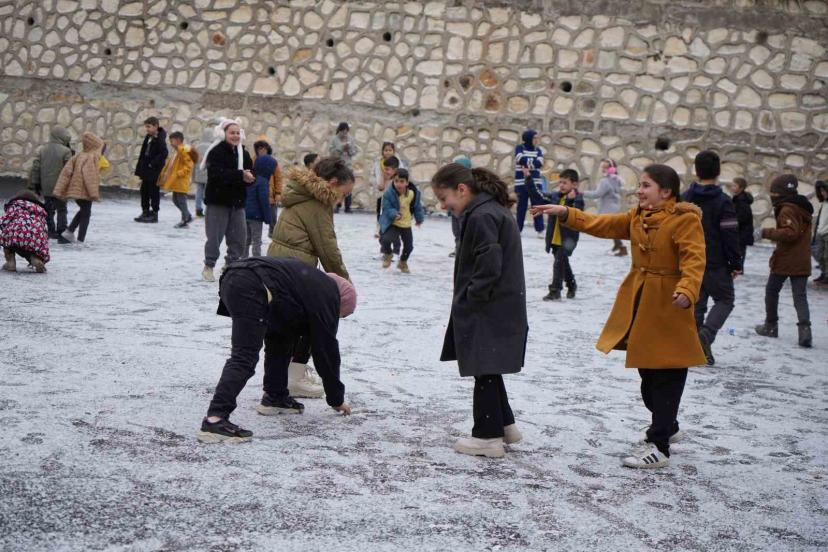 Karın yağdığını gören öğrenciler, teneffüs zilinin çalmasıyla birlikte soluğu okul bahçesinde aldı. Karın tadını doyasıya çıkaran Ali Eymen Antika, Emir Subay ve Fatma Zehra Demiray isimli öğrenciler, arkadaşlarıyla koşuşturup, birbirleriyle oyunlar oynayarak karın keyfini çıkardı.