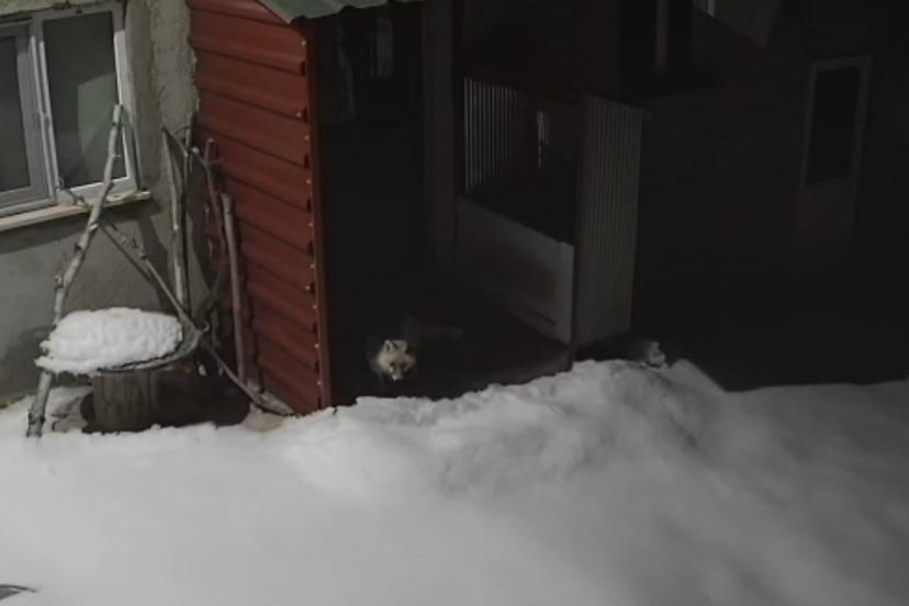 Bayburt’un Kurbanpınar köyünde daha önce vaşağın tavşan avladığı evin bahçesinde bu kez tilki yaban tavşanı avladı. O anlar, güvenlik kamerasına yansıdı.