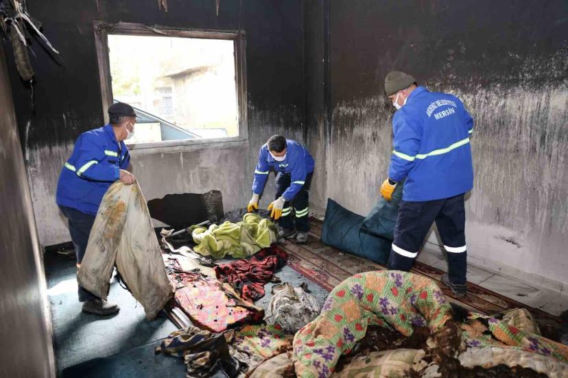Mersin’in Akdeniz ilçesine bağlı Güneş Mahallesi’nde çıkan yangında zarar gören ev, belediye ekiplerinin yürüttüğü temizlik ve tahliye çalışmasıyla yeniden yaşanabilir hale getirilmeye çalışıldı. Çalışmalar sırasında bulunan nakit para ve banka kartları ise tutanakla ev sahibine teslim edildi.