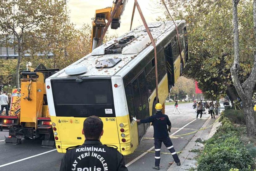 Beşiktaş’ta İETT şoförünün hayatını kaybettiği kazada otobüs olay yerinden kaldırıldı