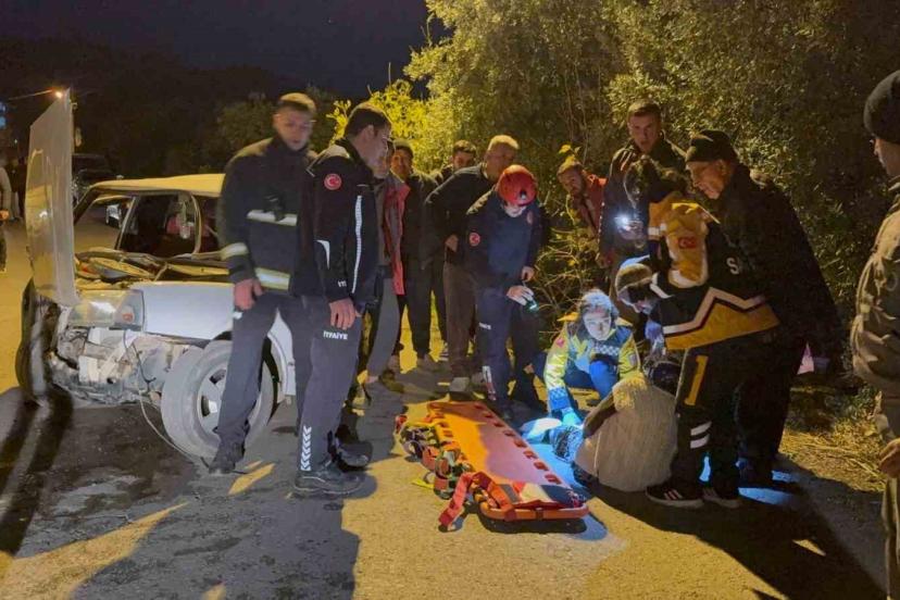 Antalya’nın Gazipaşa ilçesinde meydana gelen trafik kazasında su kanalının bağlantı noktasındaki beton bloğa çarpan Tofaş marka otomobil hurdaya döndü.