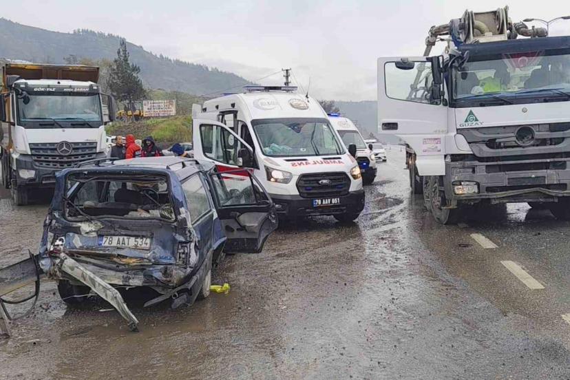 Karabük’te beton mikseri ile otomobilin çarpışması sonucu 1’i çocuk olmak üzere 5 kişi yaralandı.