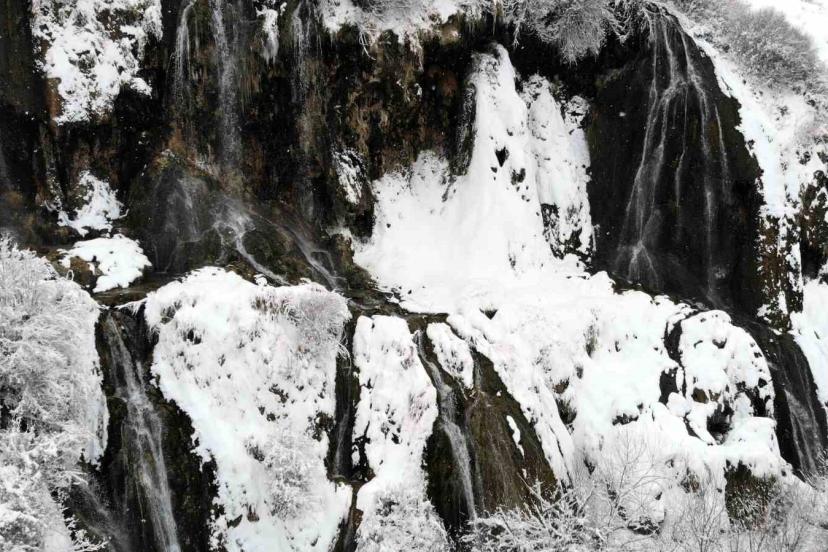 Beyaz gelinliğini giyen Girlevik Şelalesi kışın da göz kamaştırıyor