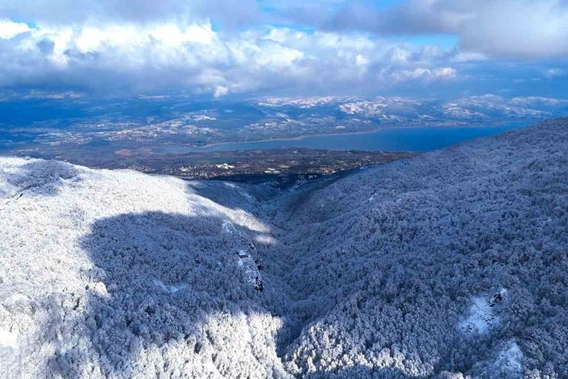 Yaklaşık 10 gündür aralıklarla devam eden kar yağışı Kartepe’yi adeta bembeyaz yaptı. Kar kalınlığının 50 santimi geçtiği zirvede drone ile çekilen görüntüler eşsiz manzarayı gözler önüne serdi. Samanlı dağlarının beyaz gelinliği, Sapanca’nın maviliği ve Kartepe ilçesinin yeşili tek karede buluştu. Ortaya ise seyrine doyumsuz manzaralar çıktı. Hergün yüzlerce kişinin ziyaret ettiği Kartepe’nin eşsiz manzarasını turistler fotoğraflamayı ihmal etmedi.
