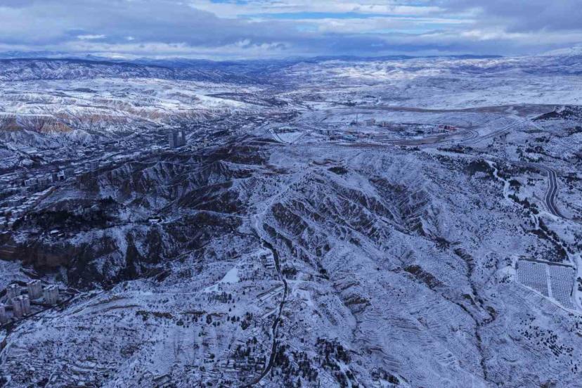 Beyaz örtüyle kaplanan Çankırı havadan görüntülendi