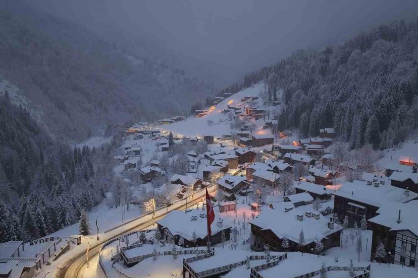 Rize’nin Çamlıhemşin ilçesinde bulunan dünyaca ünlü turizm merkezi Ayder Yaylası, etkili olan kar yağışının ardından beyaza büründü.