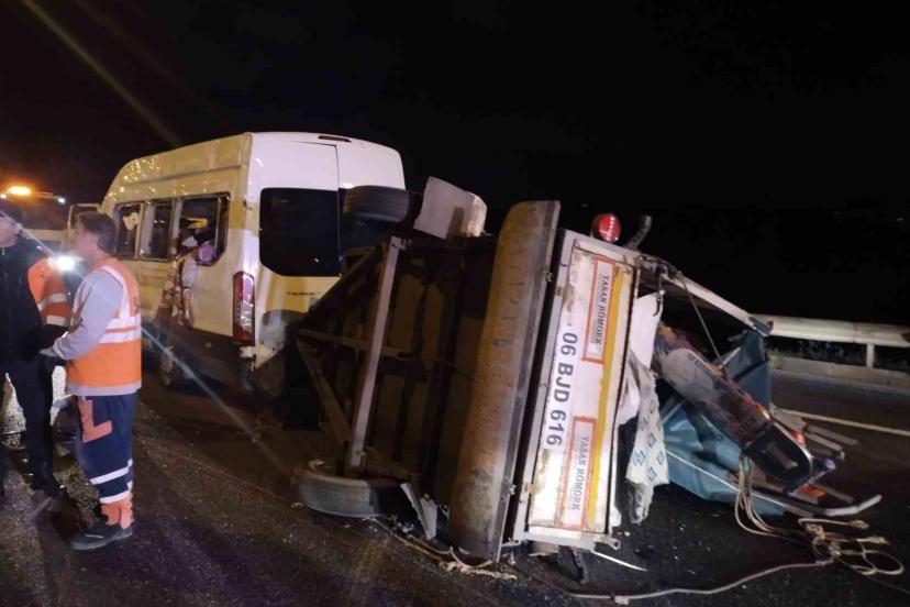 Olay 03.00 sıralarında TEM Otoyolu Kavacık mevkii Molla Gürani Viyadüğü Edirne istikametinde meydana geldi. 06 BJ d 616 plakalı ve römork yüklü işçi servisi seyir halindeyken sürücünün direksiyon hakimiyetini kaybetmesiyle devrildi. Kazada 3 kişi yaralandı. İhbar üzerine olay yerine polis itfaiye ve sağlık ekipleri sevk edildi. Minibüsteki yaralılar olay yerinde yapılan ilk müdahalenin ardından ambulansla hastaneye kaldırıldı. Kaza nedeniyle TEM Otoyolu Edirne istikametinde polis ekipleri otoyolda 3 şeridi kapatarak trafik akışını kontrollü olarak sağladı. Devrilen minibüsün çekici yardımıyla kaldırılmasıyla beraber trafik akışı yeniden normale döndü.
