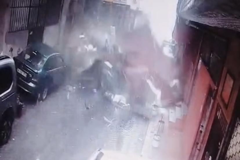 İstanbul’da etkili olan kuvvetli lodos, Beyoğlu’nda tehlikeli anlara neden oldu. Şiddetli rüzgarın etkisiyle bir binanın çatısı yerinden koparak sokağa savruldu. O sırada sokaktan geçen iki kişi ve motokurye, uçan çatının altında kalmaktan saniyelerle kurtuldu. O anlar ise güvenlik kamerasına yansıdı.