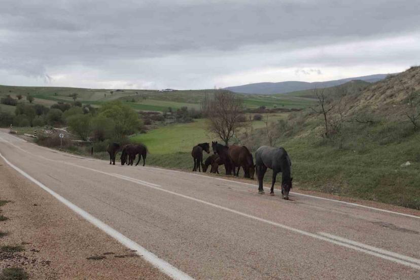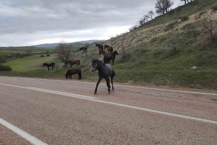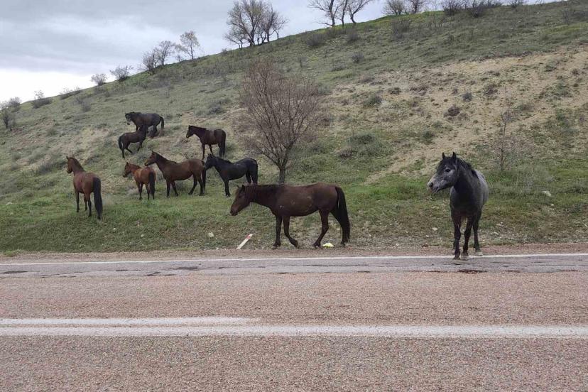 Ankara’nın Beypazarı ilçesinde yılkı atları doğal yaşam alanlarında görüntülendi.
