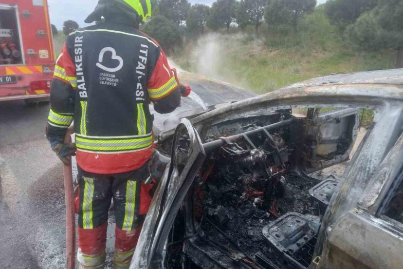 Biga-Bandırma Karayolu Marmara OSB yakınlarında çıkan araç yangını ekiplerin müdahalesiyle söndürüldü.
