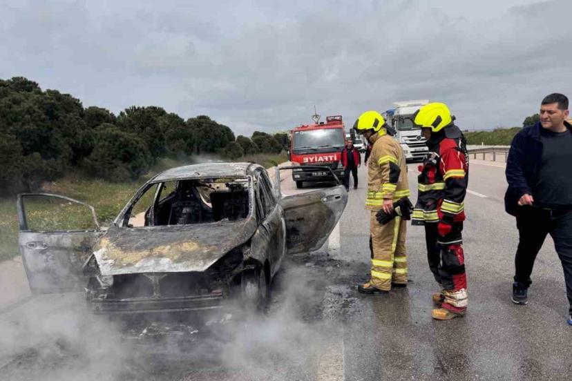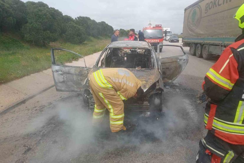 Biga-bandırma karayolunda çıkan araç yangını söndürüldü