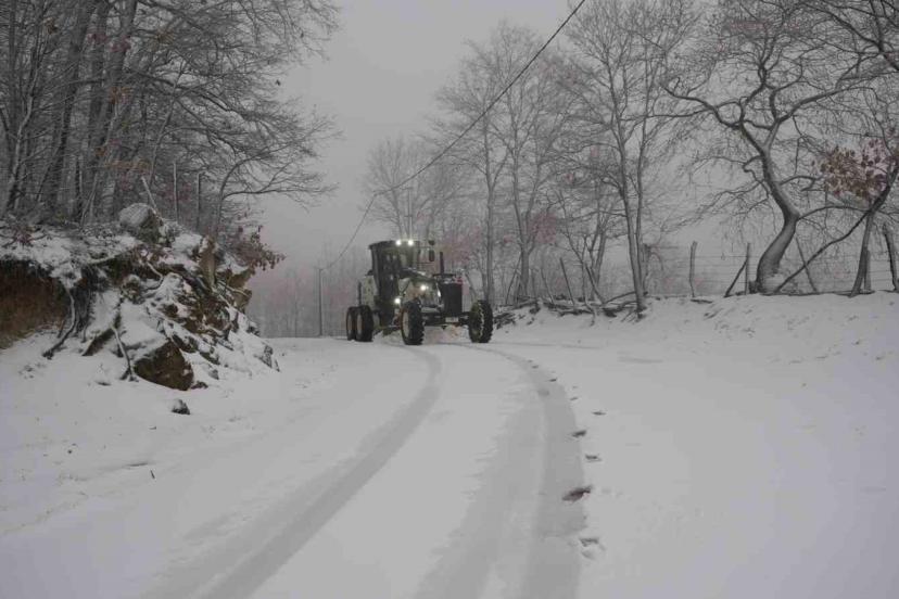 Biga’da karla kaplanan 2 köy yolu açıldı
