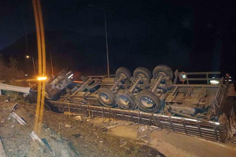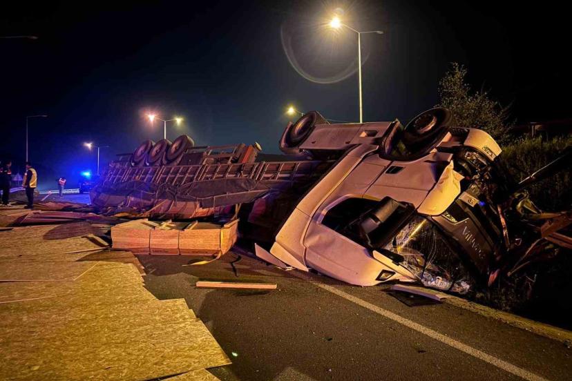 Bilecik’te devrilen tırın sürücüsü yaralandı