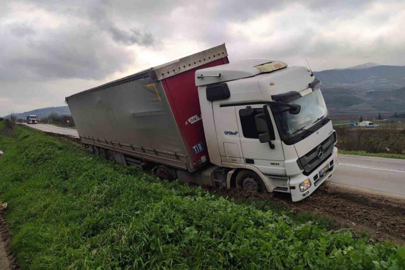 Bilecik’te direksiyon hakimiyetini kaybeden tır şarampole düştü
