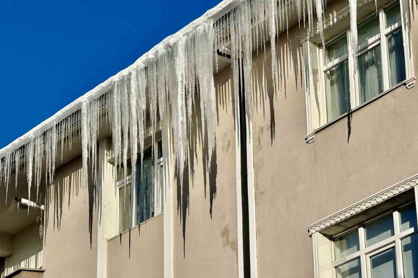 Bina çatılarındaki dev buz sarkıtları tehlike saçıyor